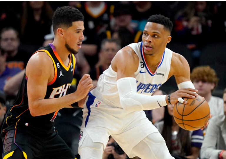 洛杉矶快船队的拉塞尔威斯布鲁克参加了 NBA 西部联盟的第二场比赛。