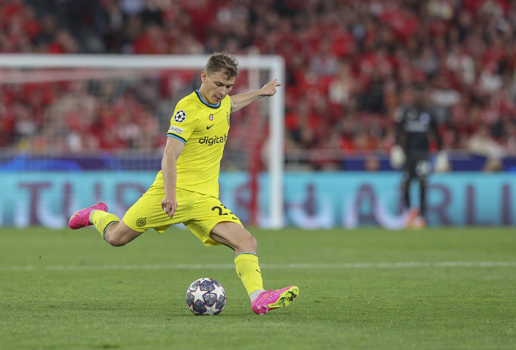 吉祥坊国际米兰队的尼科洛·巴雷拉在本菲卡队和国际米兰队的欧冠 16 强赛首回合比赛中取得进球。