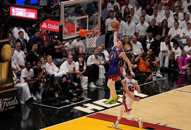 吉祥坊吉祥坊丹佛掘金队的小迈克尔波特在 NBA 总决赛第 5 场对阵迈阿密热火队的比赛中失手。